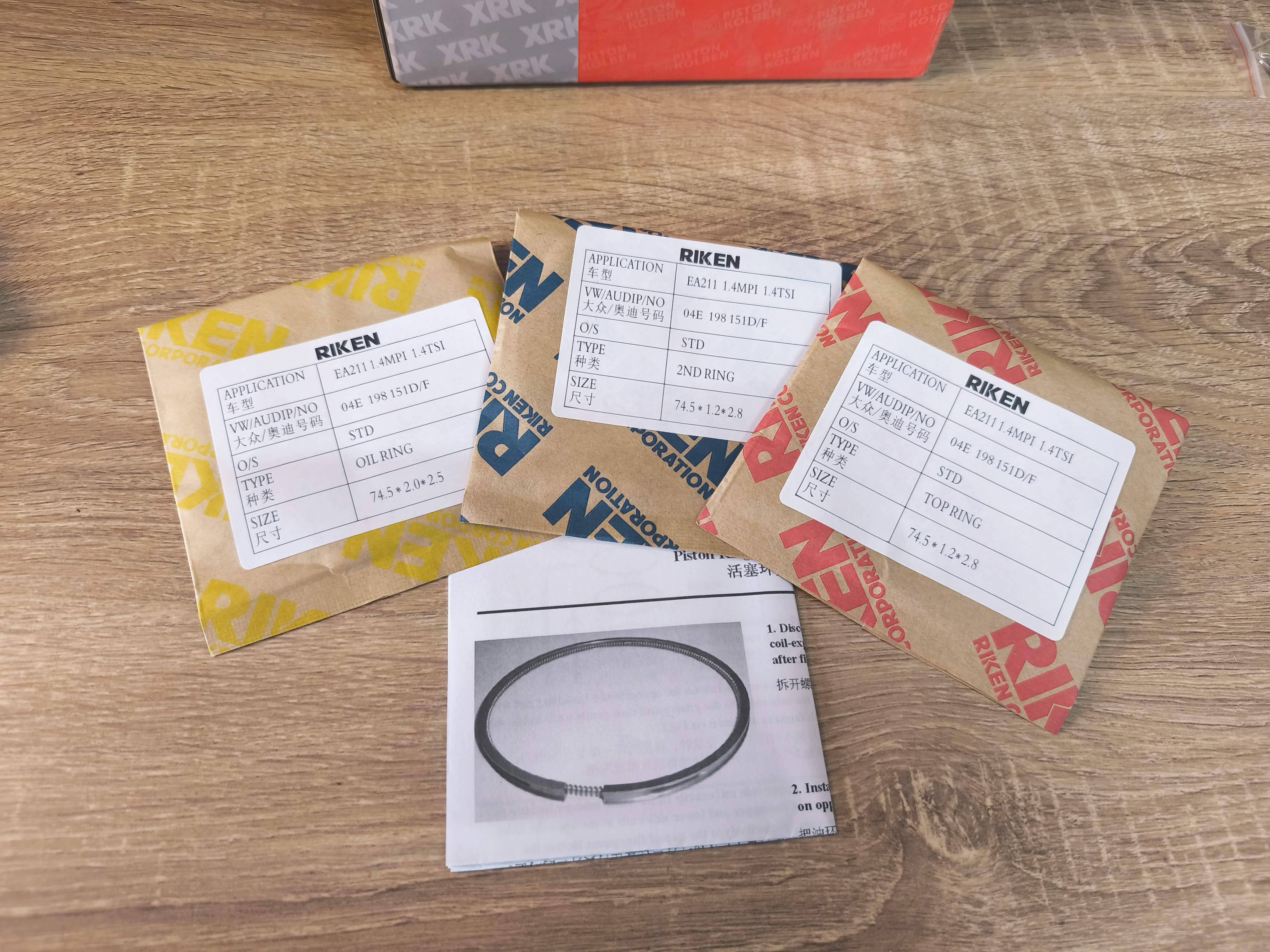 ✅ Комплект оригинальных поршней производства RIK (Япония) 4 шт. с кольцами и пальцами, размер поршней - стандарт, для автомобилей Volkswagen Skoda Seat с двигателями ЕА211 1,4 TSI и др