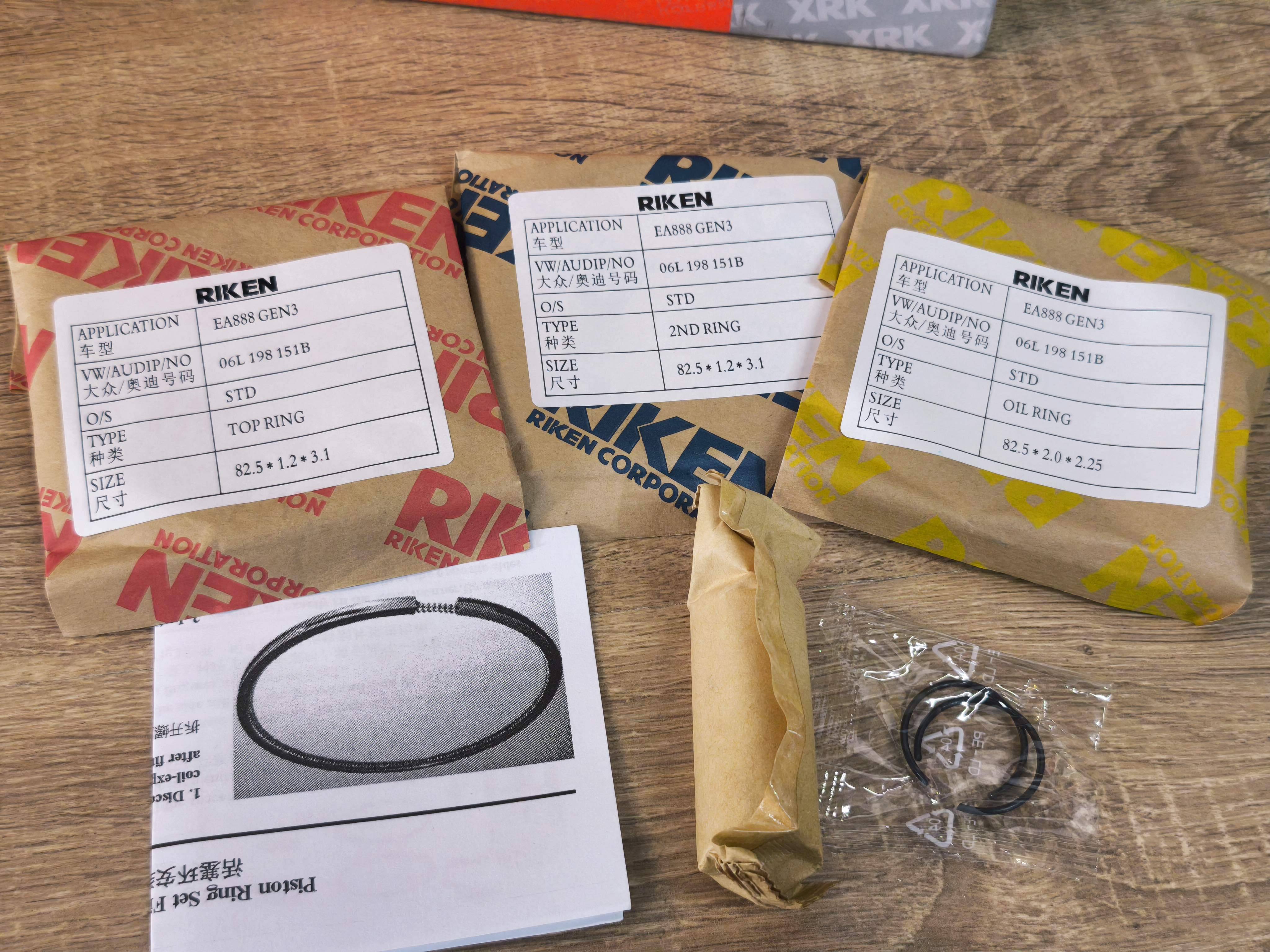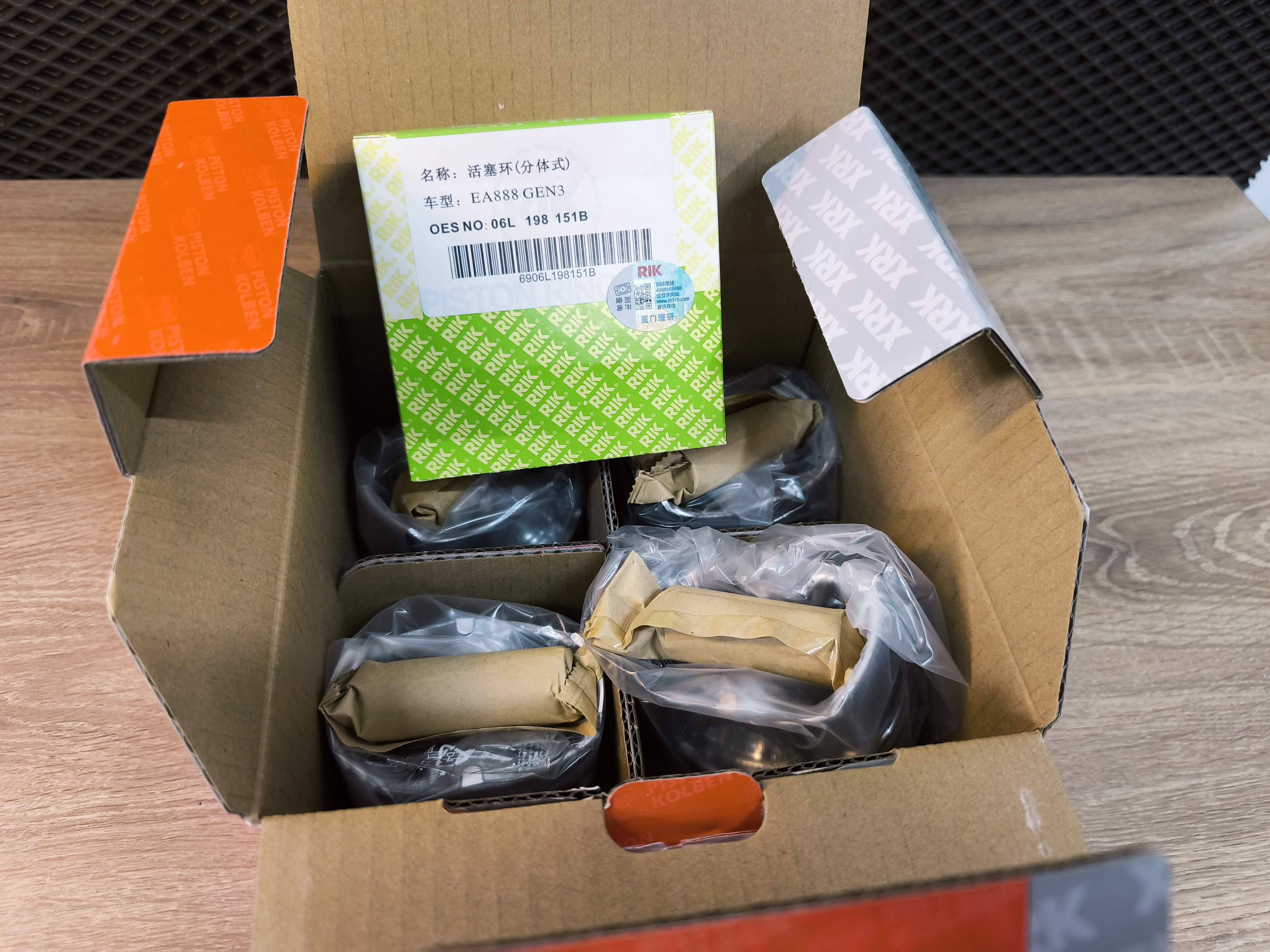 ✅ Комплект оригинальных поршней производства RIK (Япония) 4 шт. с кольцами и пальцами 23 мм, размер поршней - стандарт, для автомобилей Volkswagen Skoda Seat с двигателями ЕА888 2,0 TSI TFSI и др